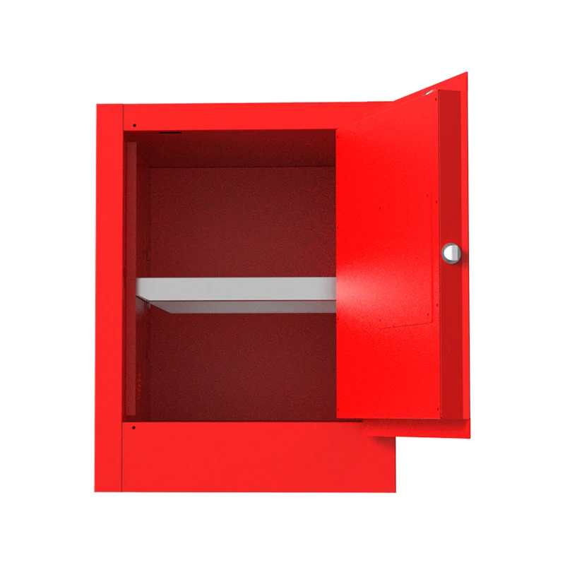 آتش گیر کیمیکل سیفٹی سٹوریج کیبنٹ کو ڈبل لیئر اسٹیل پلیٹ کے ڈھانچے کے ساتھ بنایا گیا ہے، جو کیبنٹ باڈی کی مضبوطی اور استحکام کو بہت زیادہ بڑھاتا ہے۔ صنعتی پیداوار میں، جب بار بار ہینڈلنگ اور تصادم کا سامنا کرنا پڑتا ہے، تو یہ اندر ذخیرہ شدہ آتش گیر کیمیکلز کے لیے قابل اعتماد جسمانی تحفظ فراہم کر سکتا ہے، جو کیبنٹ کو پہنچنے والے نقصان کی وجہ سے آتش گیر اشیاء کے رساؤ سے پیدا ہونے والے ممکنہ خطرات کو روک سکتا ہے۔ یہ کیمیائی خام مال کے گوداموں جیسی جگہوں کے لیے موزوں ہے۔
